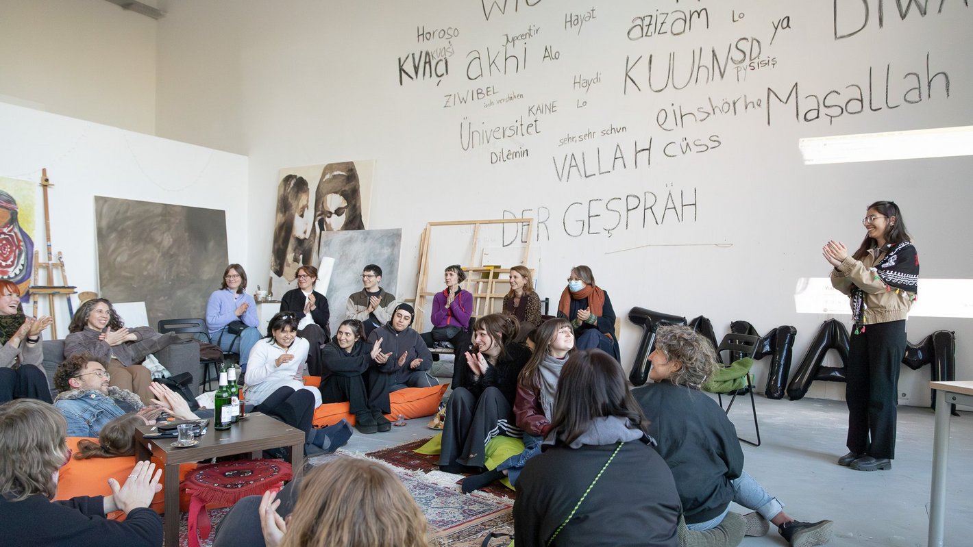 Stark besucht war das Format „Dîwan Fusion“, das sich im Rahmen der Samowar Sessions unter der Gastgeberschaft von Havîn Al-Sîndy, Professur „Kunst und Ökologien“, in deren Atelier am Artmax ereignete.