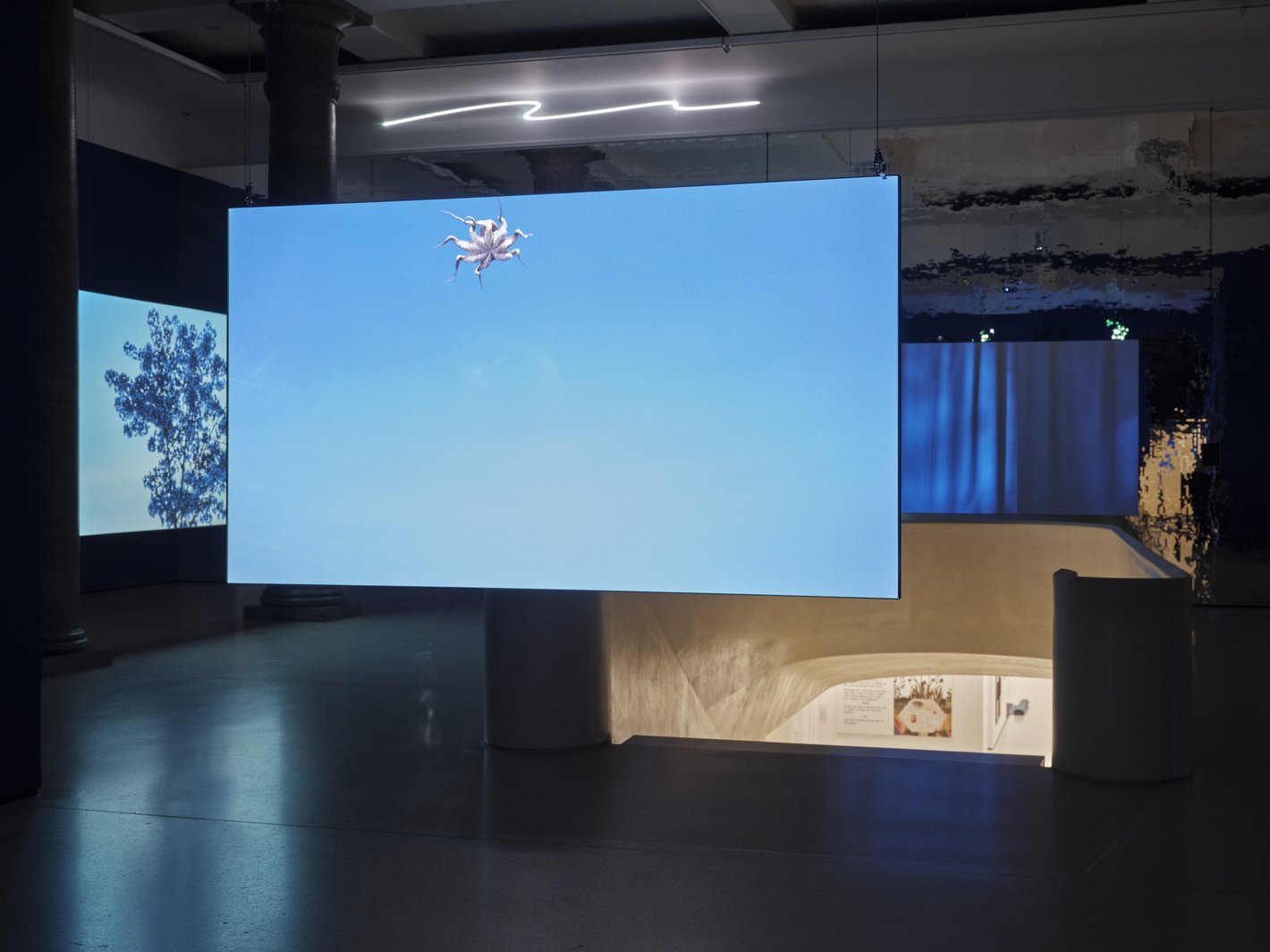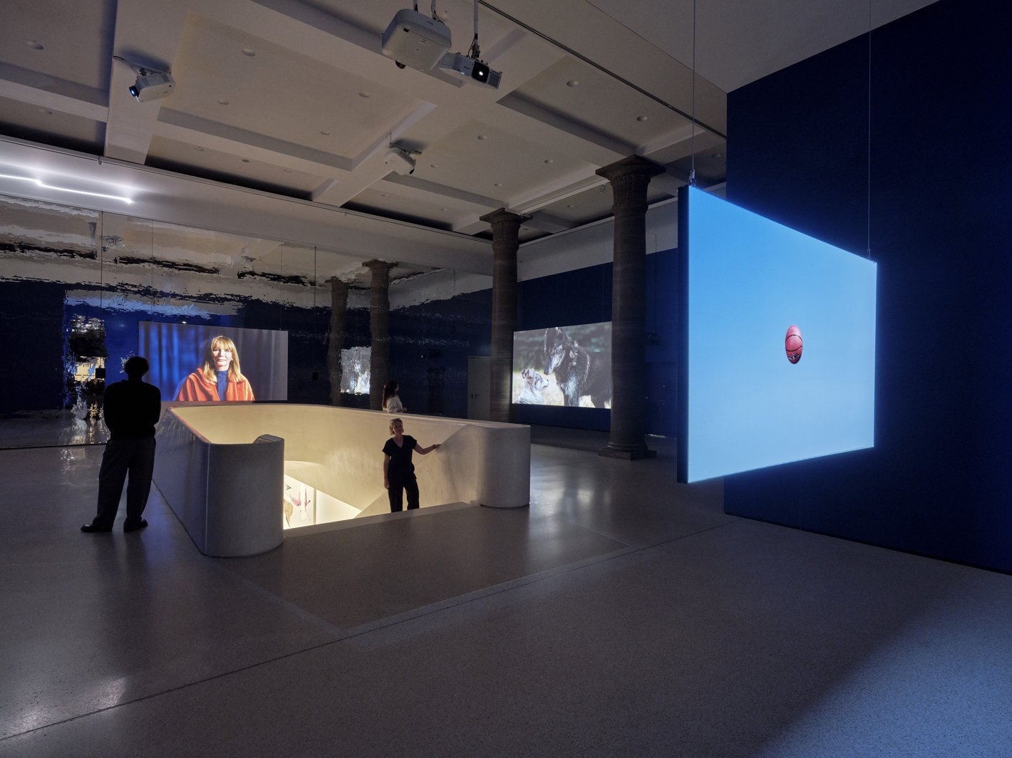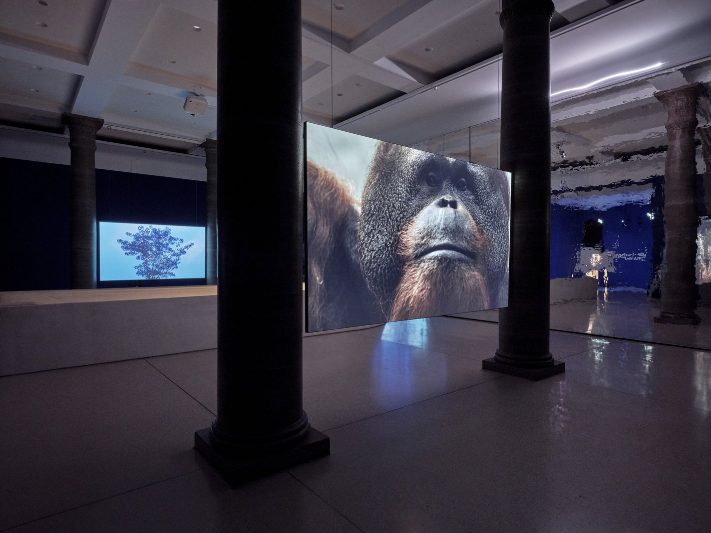 Das Städel Museum ist ein großes, traditionsreiches Museum mit einem wirklich engagierten Team. In dem Ausstellungsraum wollte ich eine neue Laserprojektion Atemkurve ausprobieren, die vom Ein- und Ausatmen inspiriert ist. Außerdem hatte ich Lust Videos aus zehn Jahren, die inhaltlich untereinander kommunizieren gegenüberzustellen. Zum Beispiel ist der Film „Wolf and Dog“, der die Begegnung zwischen einem Hund und einem Wolf zeigt, mit 1500 Bildern in der Sekunde gedreht und befindet sich gegenüber dem Film „Cherry Blossom – Down and Dusk“ – das nur mit einem Bild pro Sekunde gedreht wurde – um den Sonnenaufgang und den Sonnenuntergang sichtbar zu machen. Die extreme Zeitlupe ist einem Zeitraffer gegenübergestellt. Beide Techniken wurden gewählt, um etwas sichtbar zu machen, was wir mit bloßem Auge nicht sehen können, da wir mit 35 Bildern pro Sekunde in die Welt schauen.