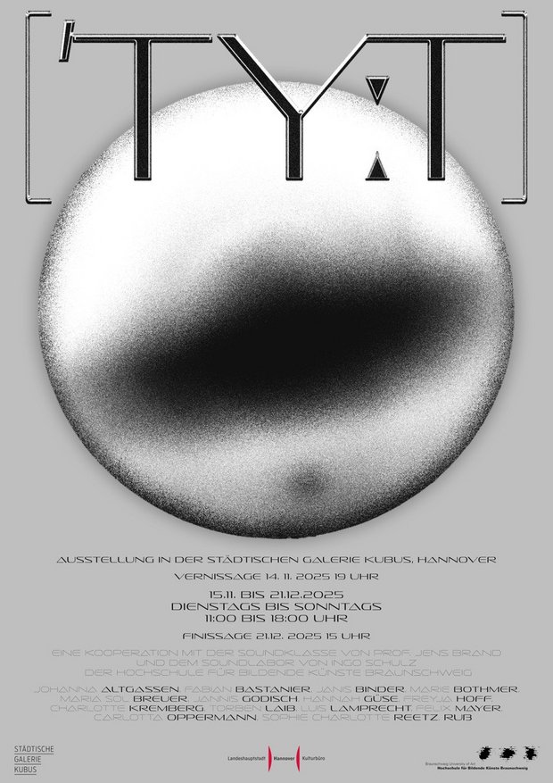 Es wird eingeladen zu der Eröffnung der Ausstellung [ˈtyːt] am Freitag, den 14. November in der Städtischen Galerie KUBUS. Die Ausstellung ist eine Kooperation von Städtische Galerie KUBUS in Hannover und der Klangkunstklasse von Prof. Jens Brand der Hochschule für Bildende Künste Braunschweig.