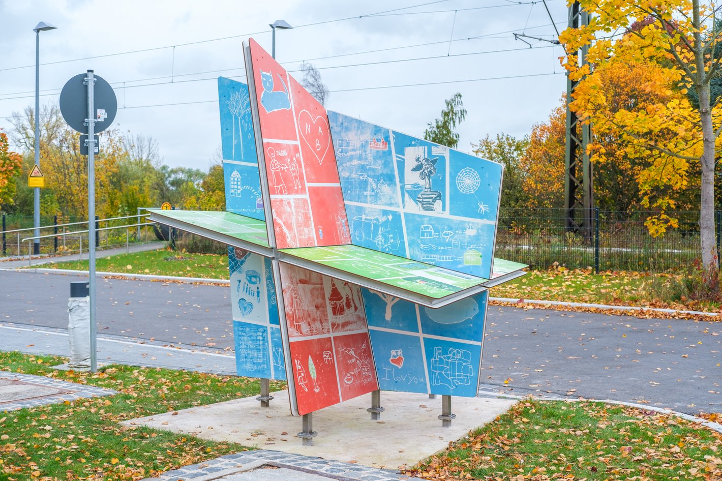 Die Skulptur wurde im Rahmen der Zusatzqualifikation »Kunstvermittlung« der Hochschule für Bildende Künste Braunschweig (HBK) unter Leitung von Prof. Martin Krenn, Ph.D. konzipiert und realisiert.