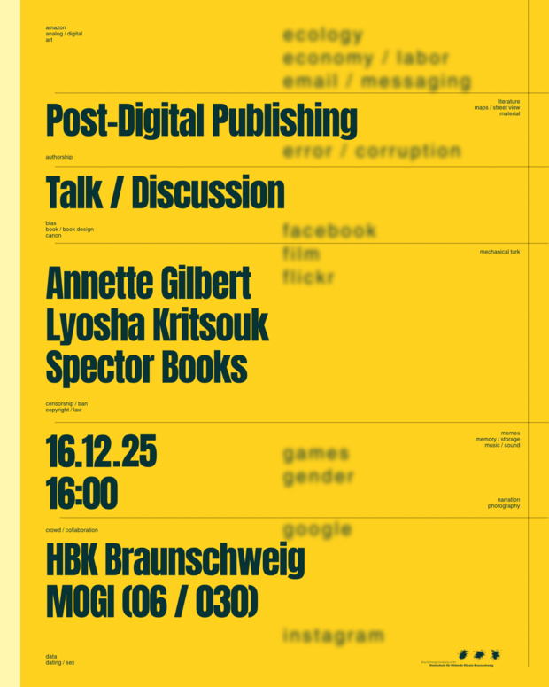 EN: The talk on Post-Digital Publishing examines contemporary forms of publishing at the intersection of print and digital technology. At its center stands the book Library of Artistic Print on Demand (Spector Books), presented by co-editor Annette Gilbert, alongside its online archive www.apod.li.