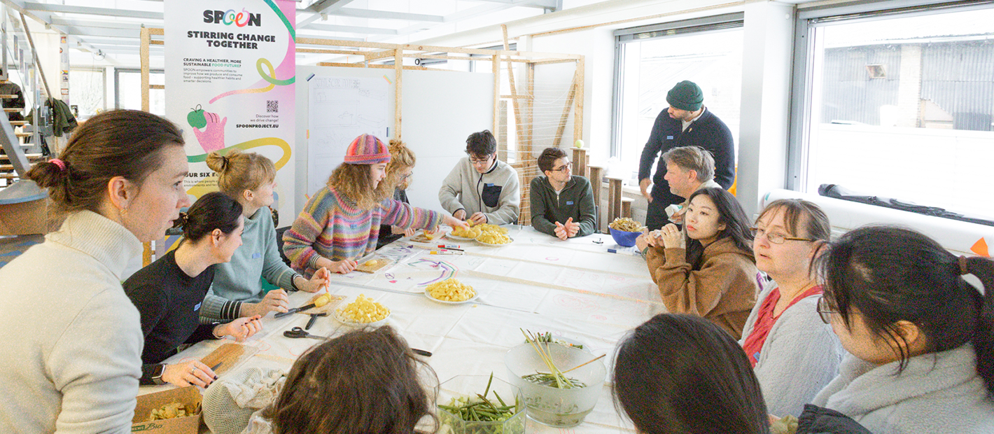 SPOON ist ein europäisches Forschungsvorhaben, das sich durch einen partizipativen Ansatz für eine Transformation des Ernährungssystems hin zu mehr Nachhaltigkeit einsetzt. Mit sechs Citizen Science Labs (CSLs) in verschiedenen europäischen Städten – unter anderen in Braunschweig mit der HBK – entwickeln und testen Forschungsteams neue App-basierte Prozesse, um die Lebensmittelverschwendung zu reduzieren, einen bewussten Konsum zu stärken und Daten zu Ernährungsgewohnheiten zu erfassen. Seit Dezember 2024 vereint das Projekt 16 Partner aus 8 Ländern, darunter Forschungseinrichtungen, Technologieunternehmen, NGOs und öffentliche Institutionen, und als einzige Universität die HBK Braunschweig.
